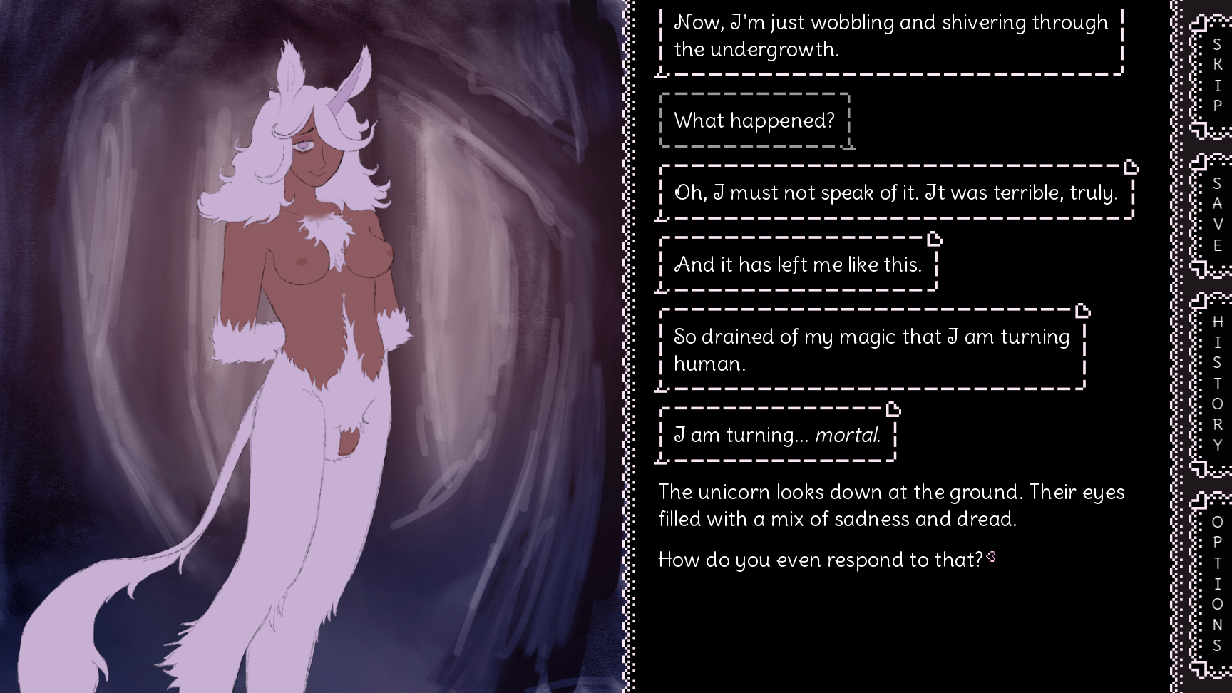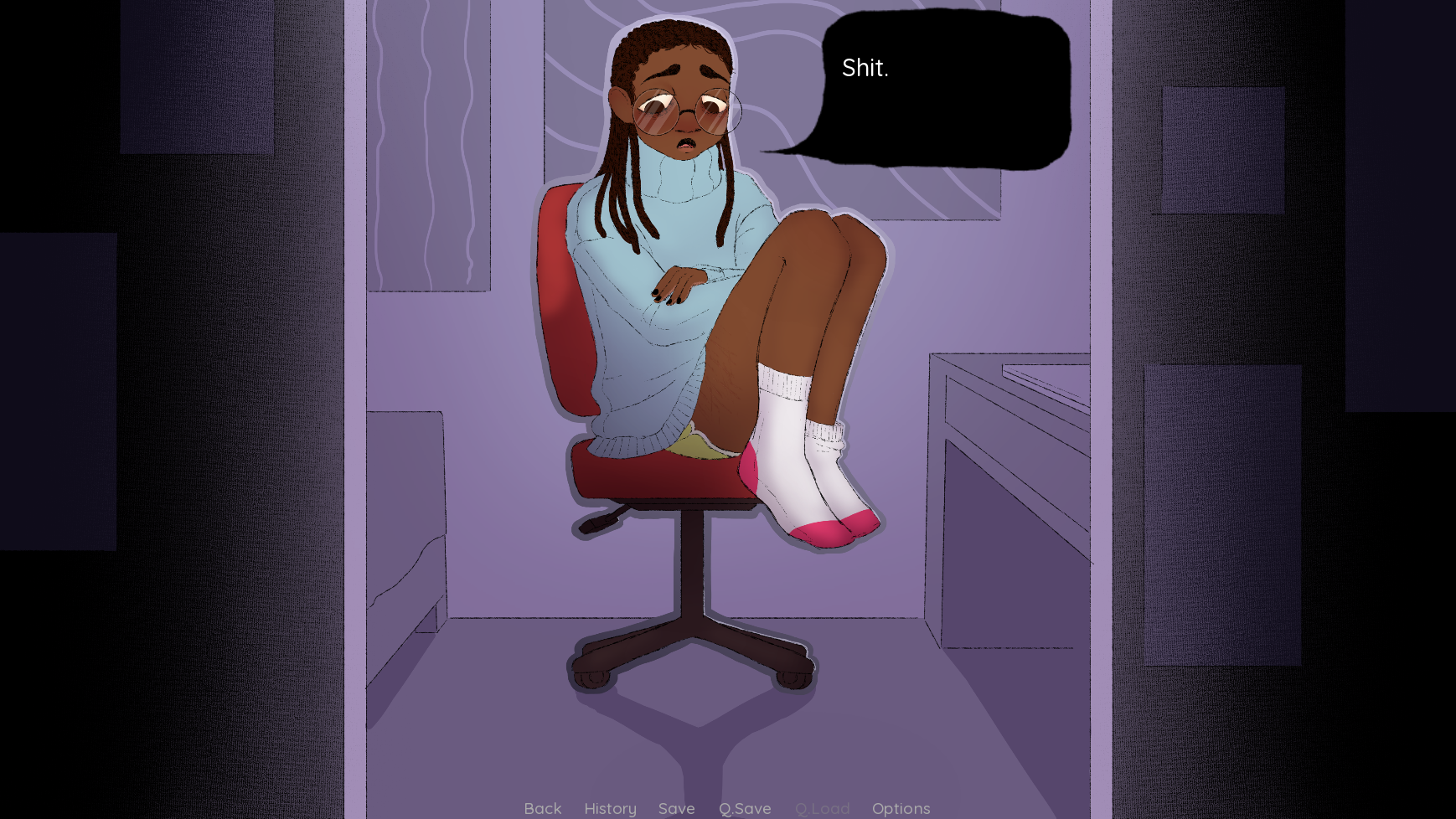 This isn’t a horror game really. More like a comedic “I can’t handle this right now” type thing. I can’t write horror.