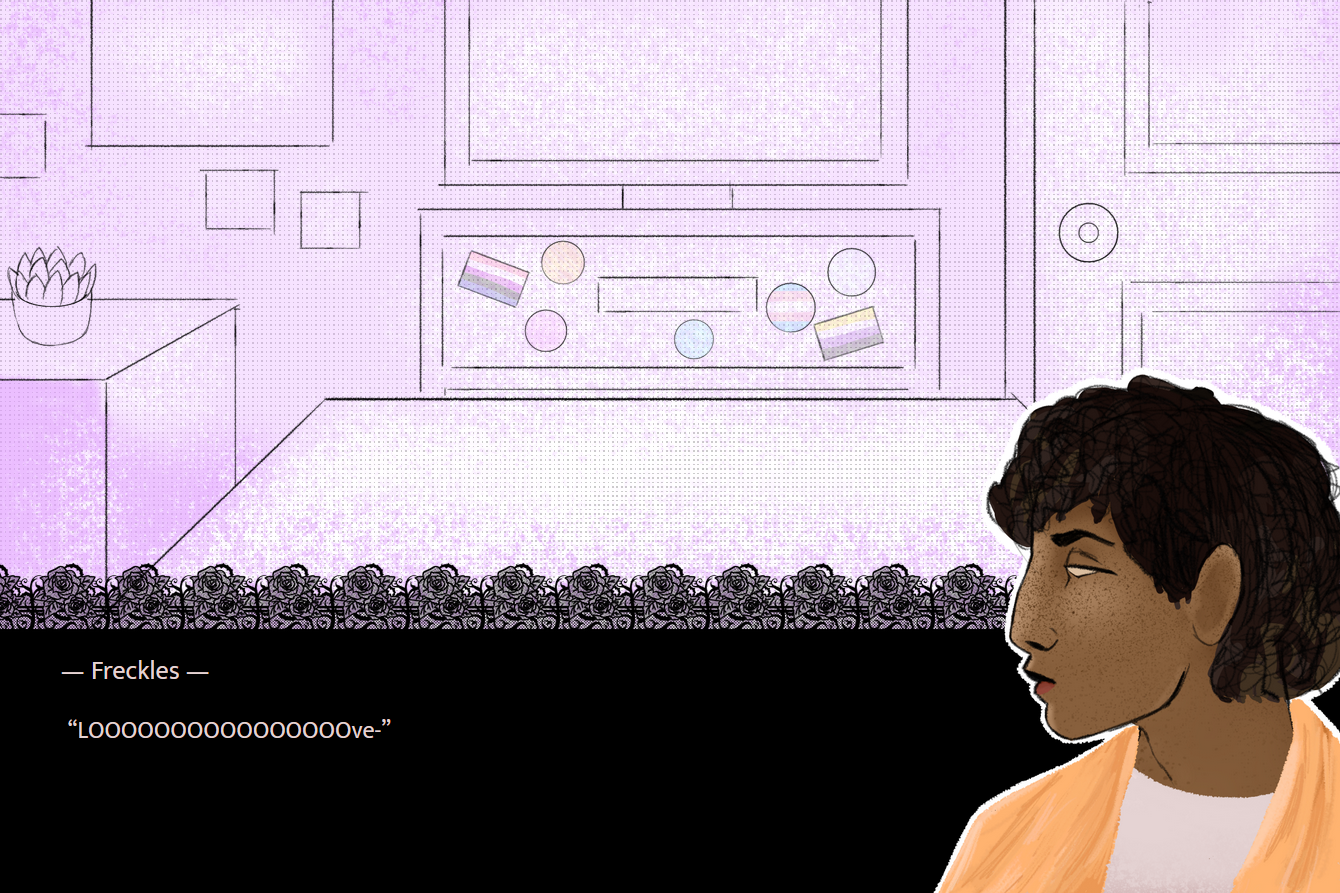Freckles is left at home sick as their partner, Beads, goes out to buy them medication.